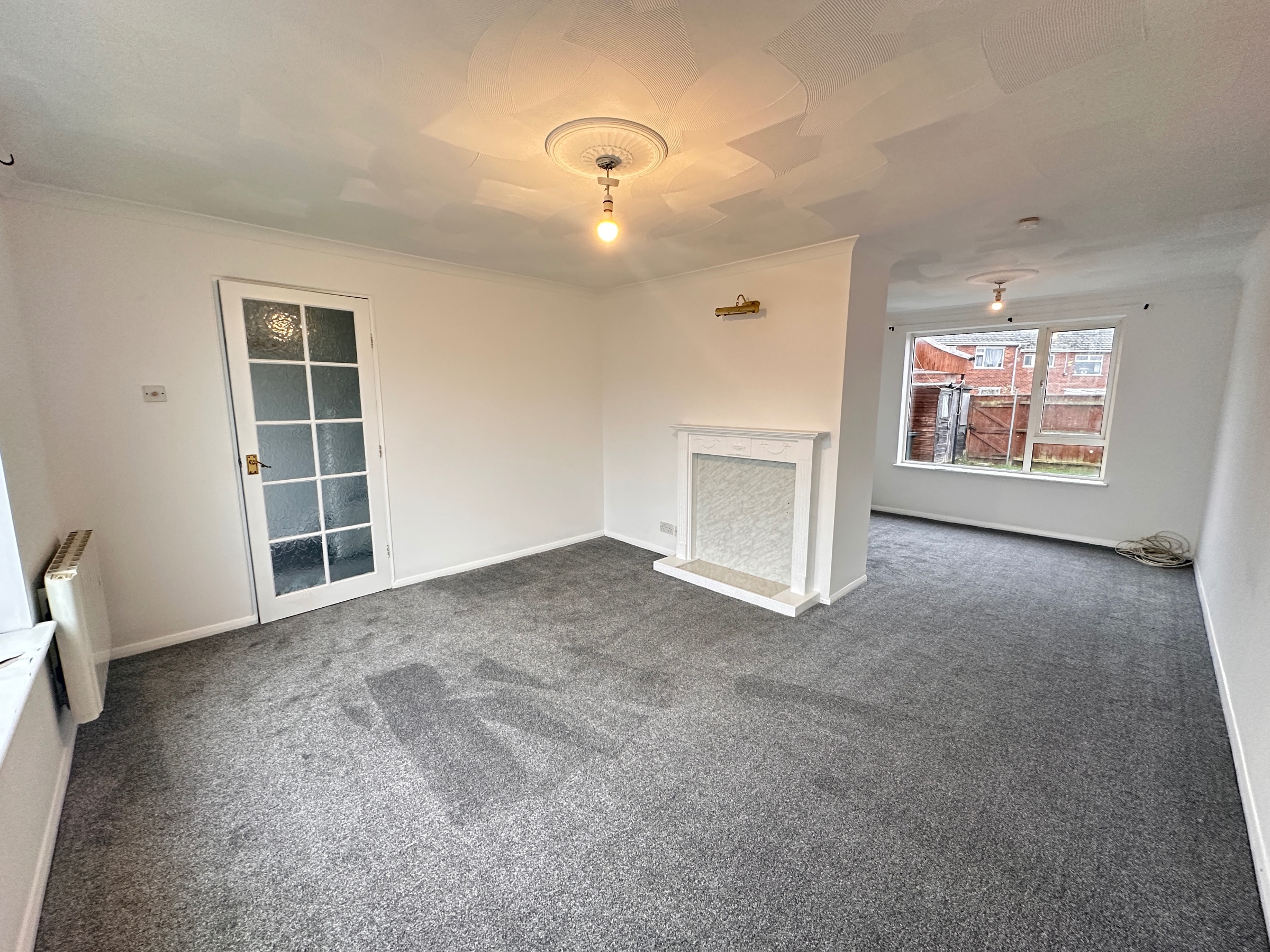 Carpet flooring, windows to the front and rear aspect, decorative fire surround and electric radiators.