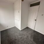 Single bedroom with carpet flooring, window to the front aspect, electric radiator and storage cupboard.