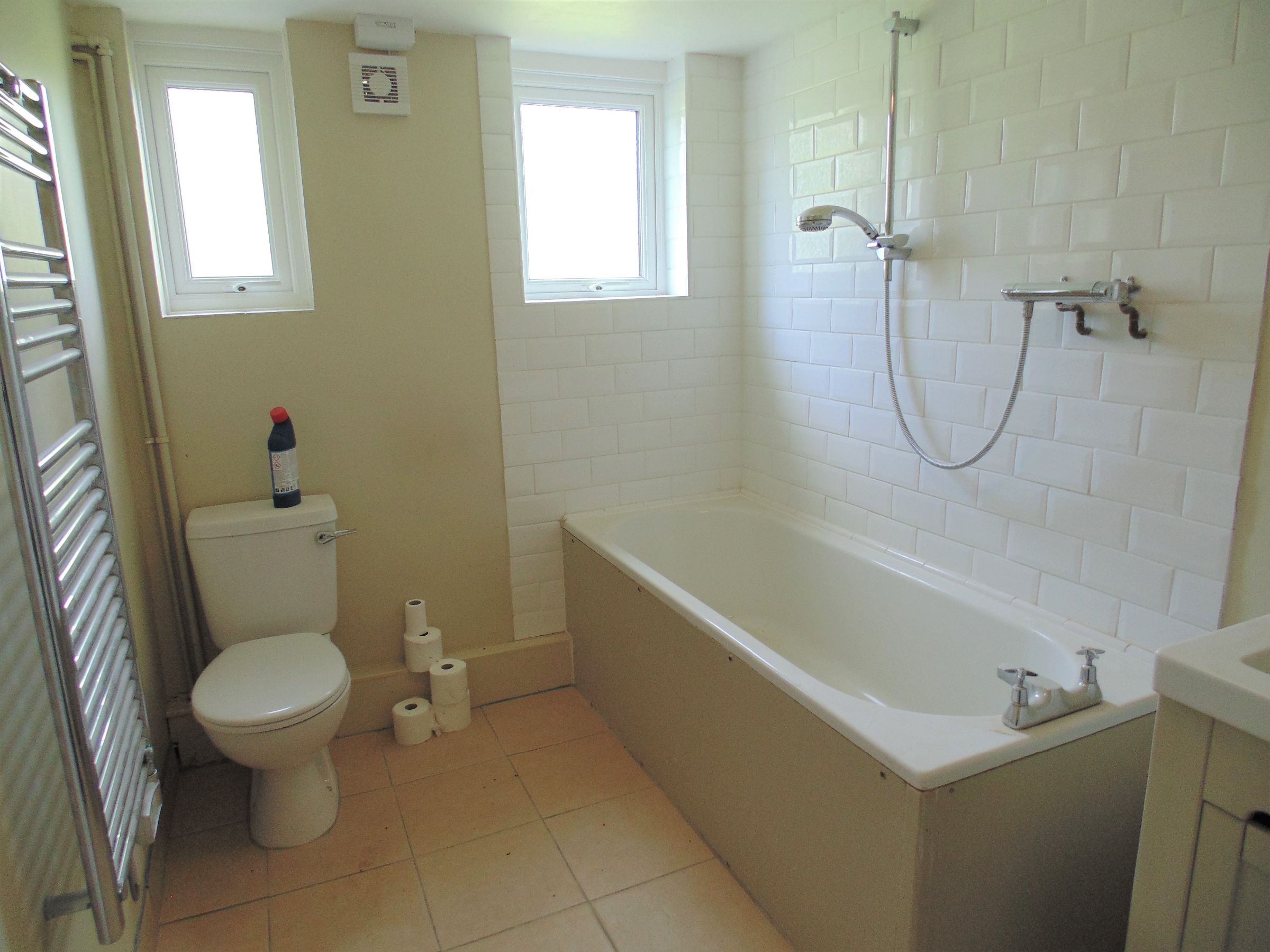 - Bathroom with shower over bath