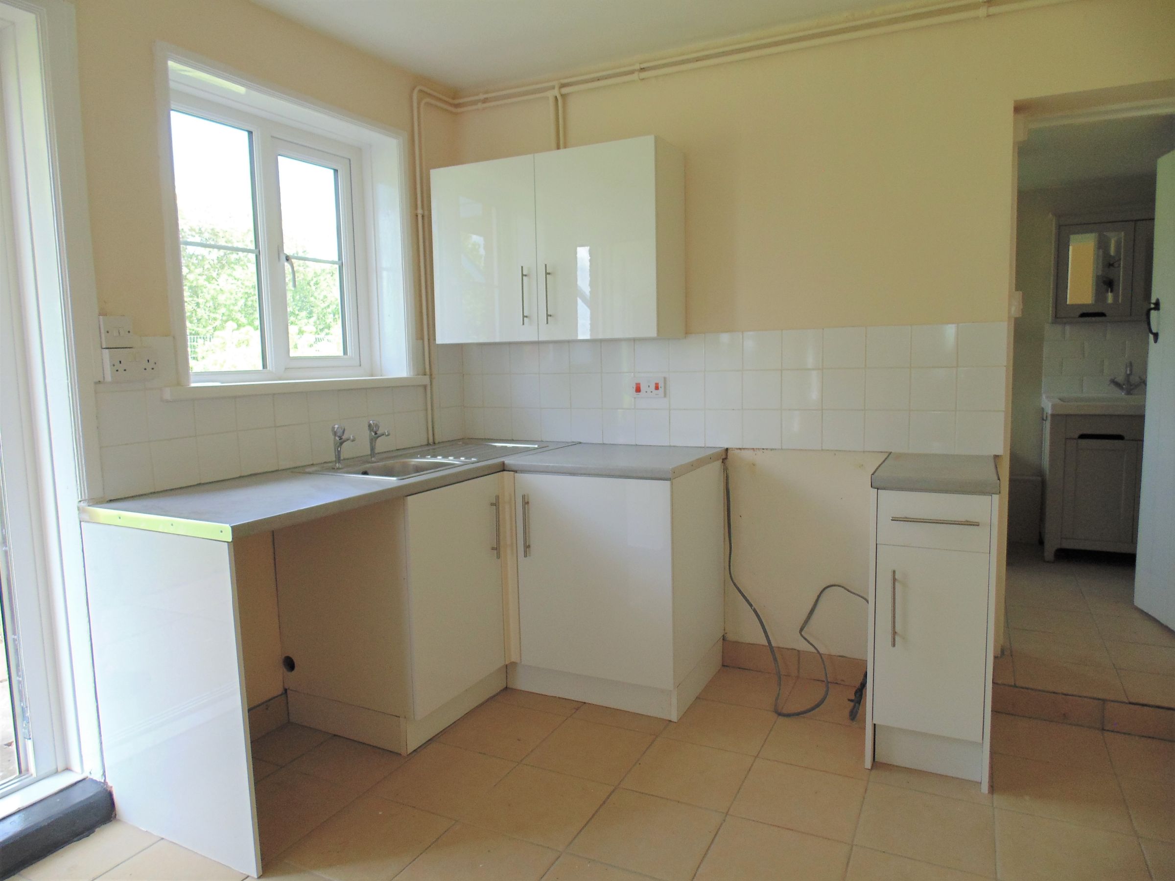 Range of base and wall units, work surfaces, inset single drainer sink unit and space for an electric cooker. Tiled flooring, thermostatically controlled electric heater, window to the side aspect and entrance door. There is also a pantry with additional work surfaces and cupboard space with space for an undercounter fridge or fridge/freezer with a window to the front aspect.