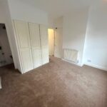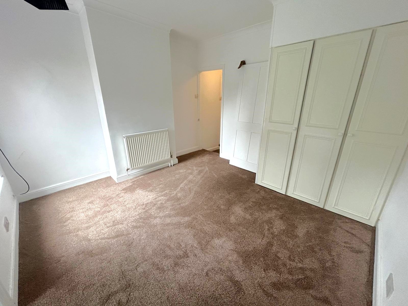 Back bedroom with newly fitted carpet, window to rear aspect with blinds, cupboard and radiator.