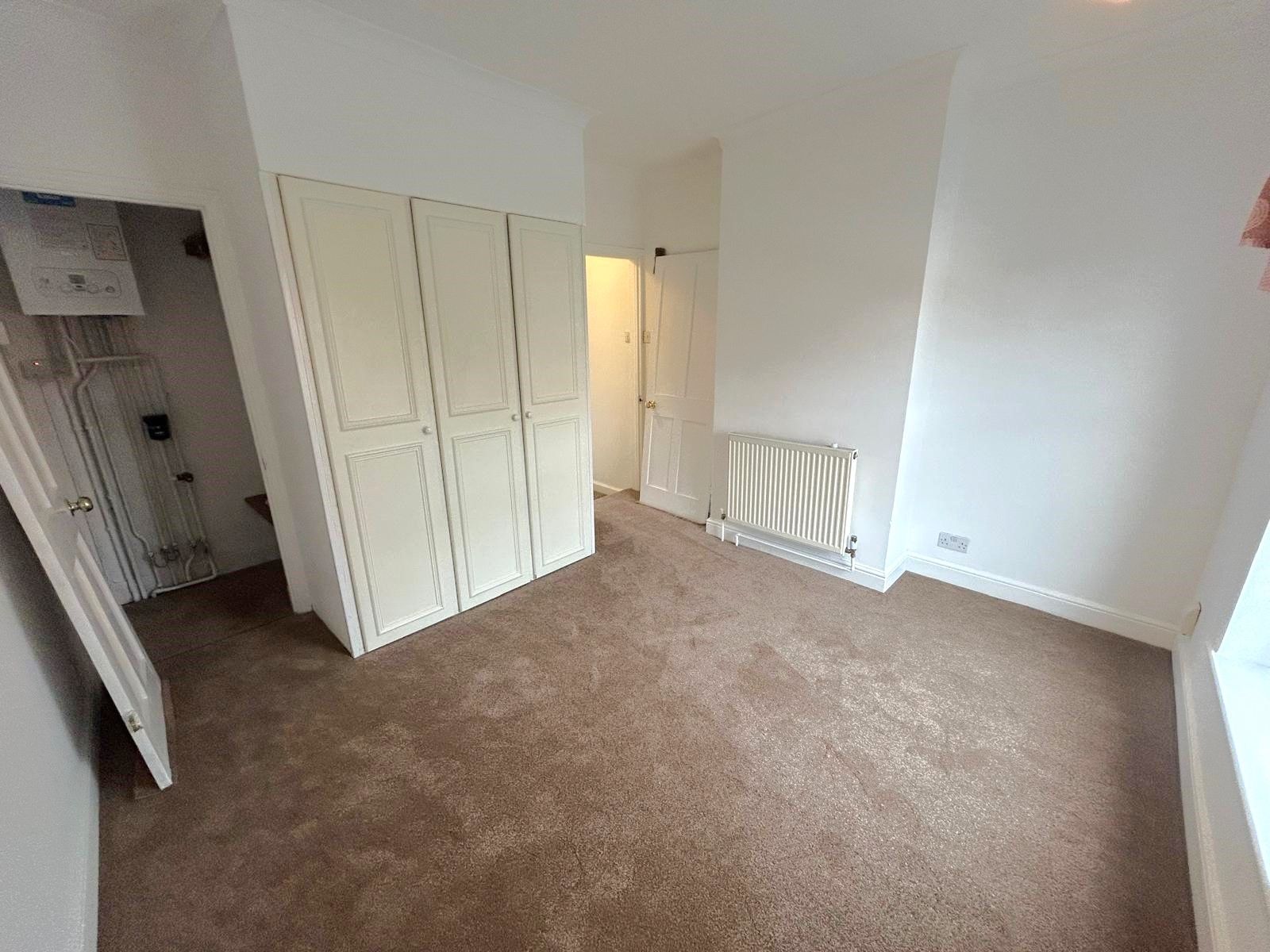 Front bedroom with newly fitted carpet, window to front aspect, radiator and cupboard over stairs housing boiler (newly installed this year)