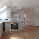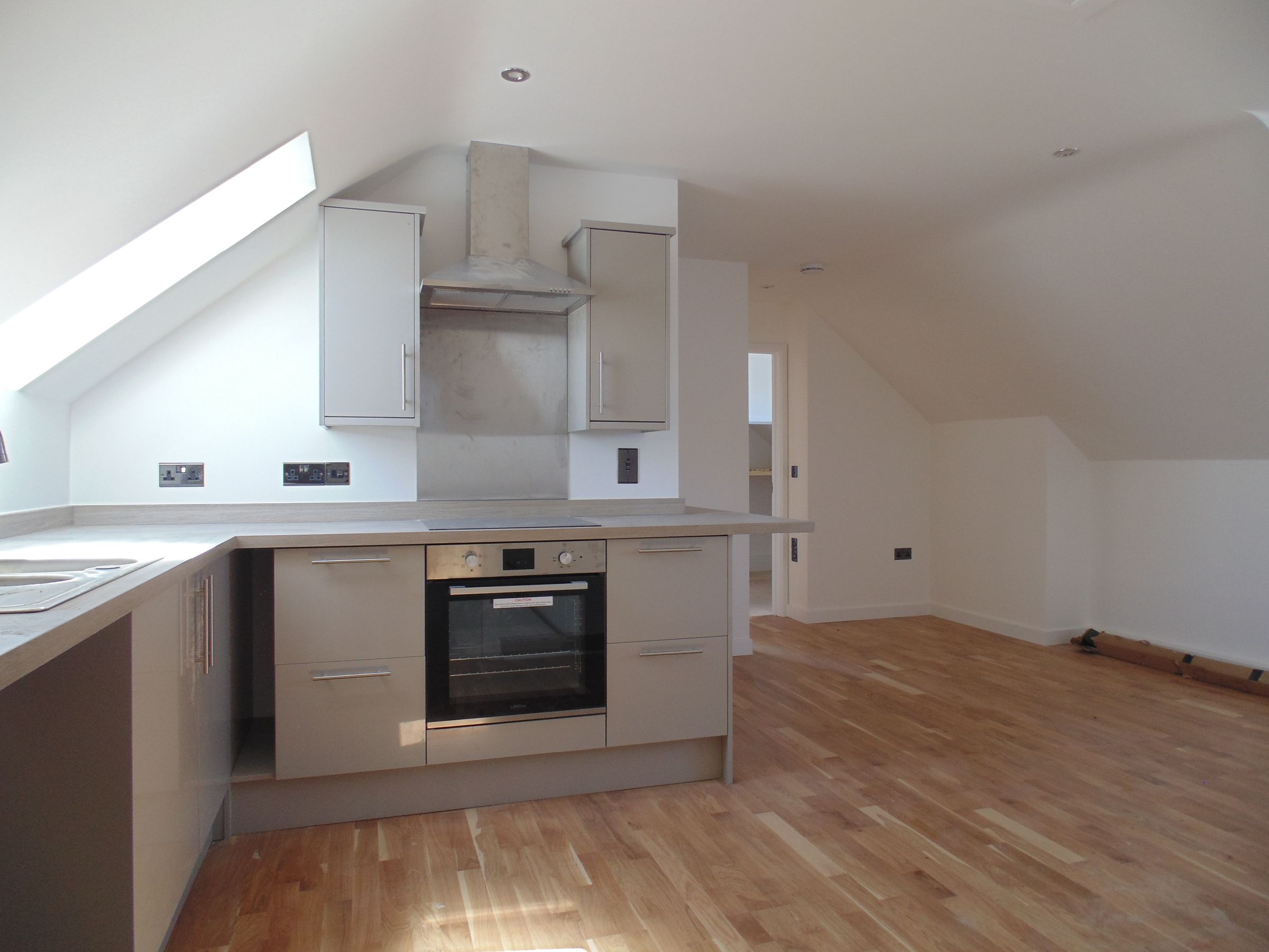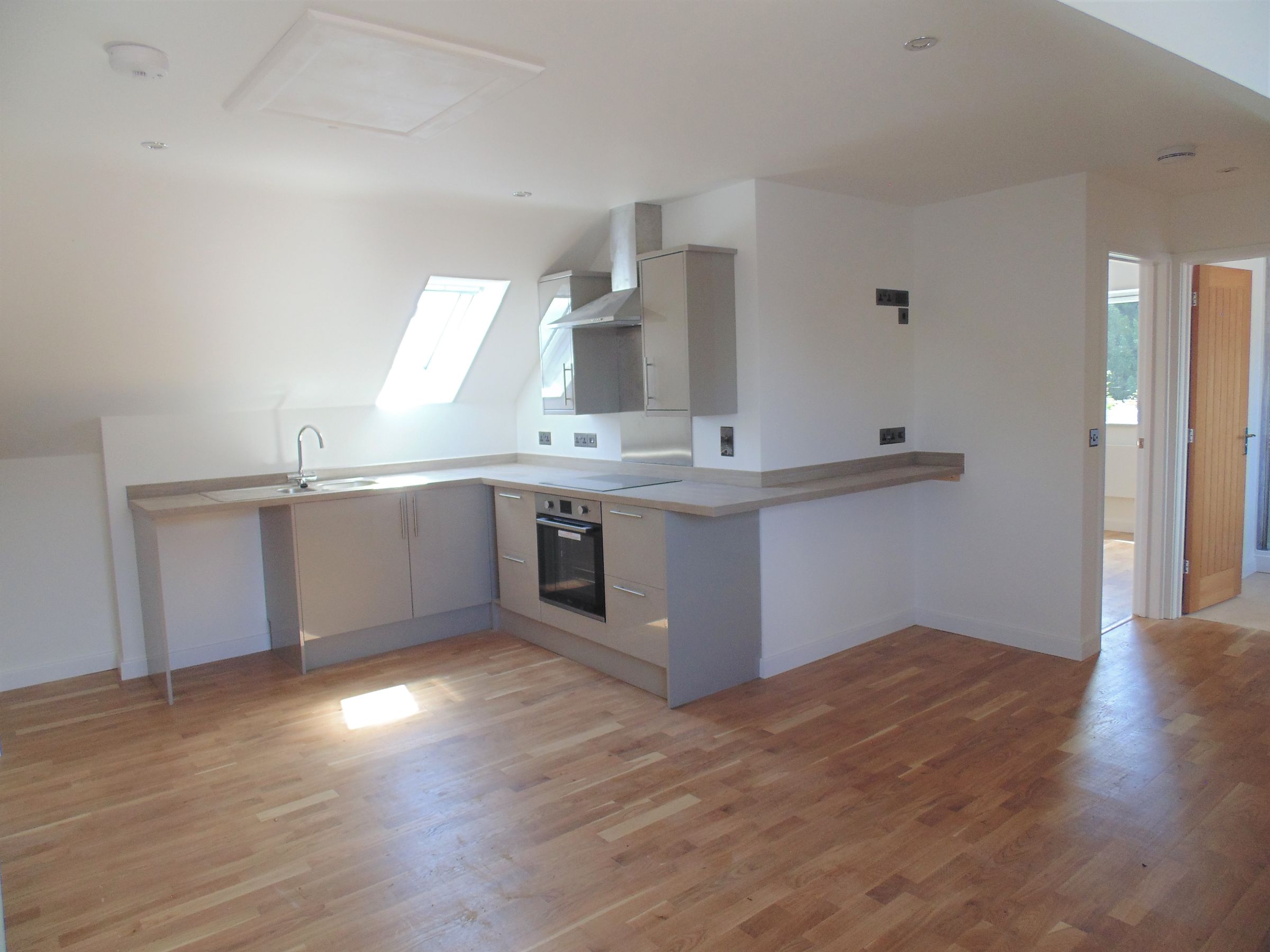 Modern first floor apartment built to a high spec with private entrance. 1 Bedroom, open plan kitchen/living room, small study/dressing room and shower room. The property benefits from UPVC double glazing, modern electric heating and parking for one car in the carport.