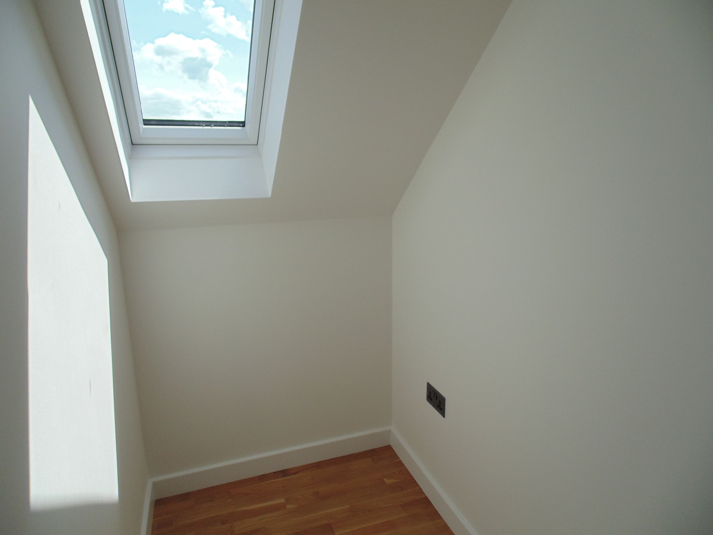 Small room suitable for a study or as a dressing room. Skylight window and oak effect flooring.
