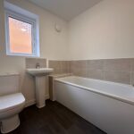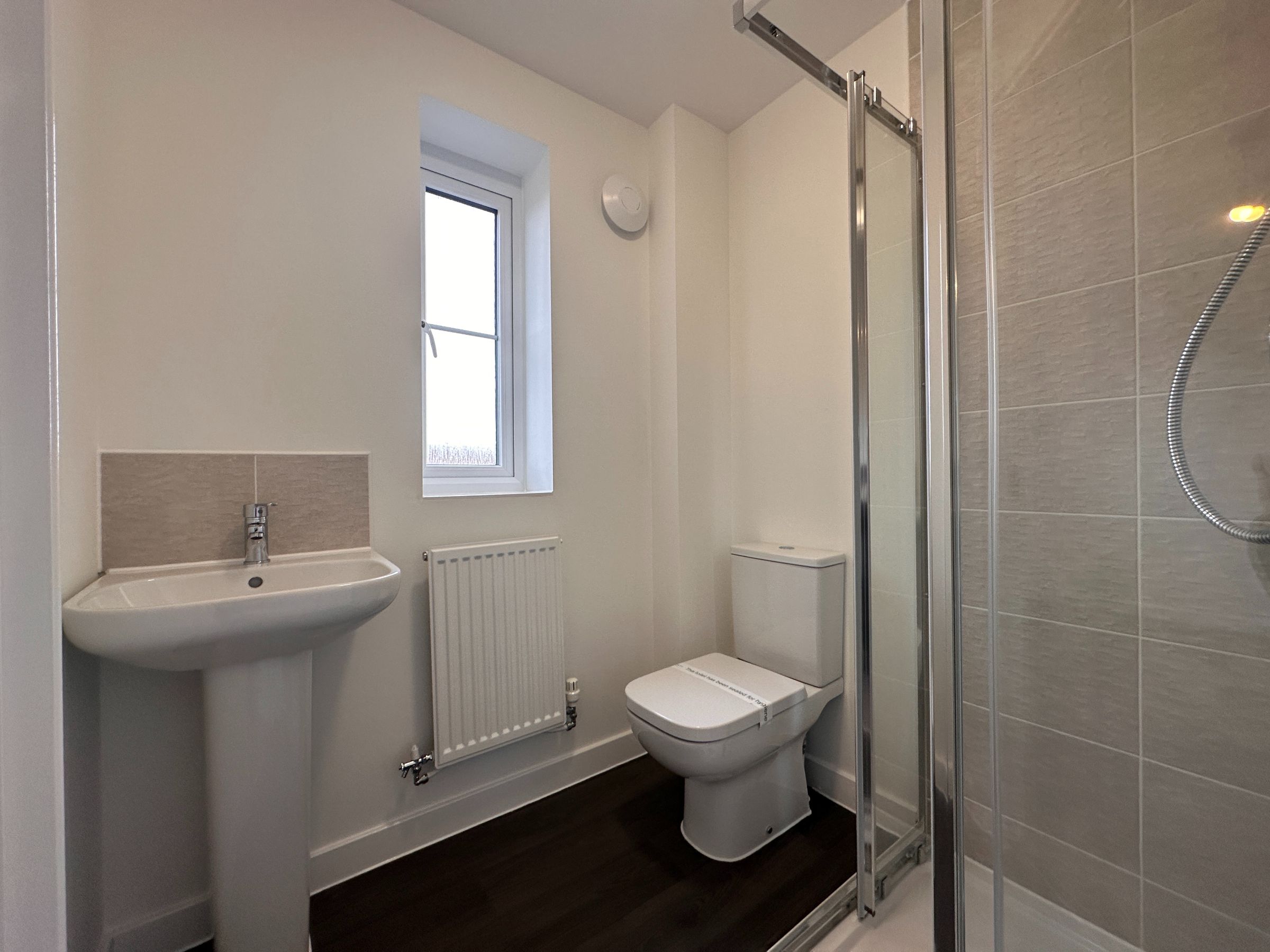 Fitted with a modern two-piece suite comprising WC and wash hand basin, finished with neutral décor and wood-effect flooring.